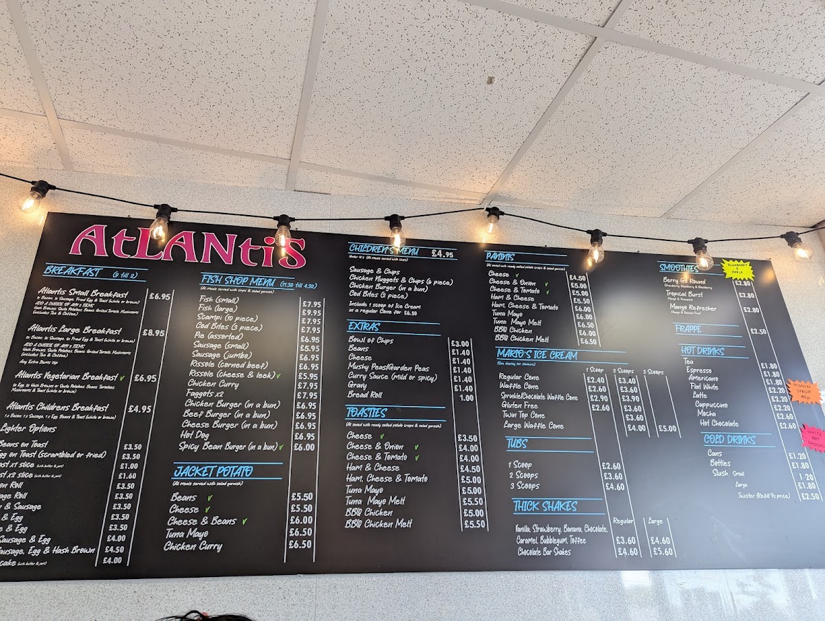 The menu at Atlantis Fish and Chips, Cafe & Ice Cream offers a delightful range of options, catering to various tastes and preferences. Whether you're in the mood for a classic British fish and chips meal or something a little more adventurous, there's something for everyone.